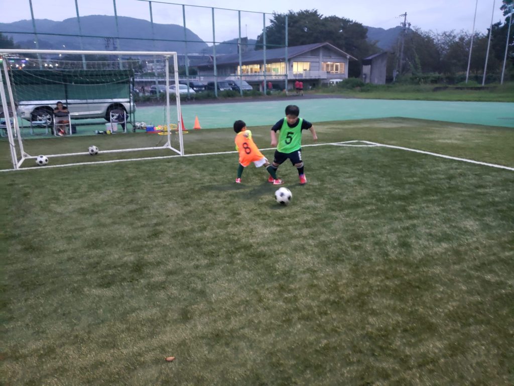 低学年はコントロールと相手を抜くドリブルをテーマにトレーニングしました。