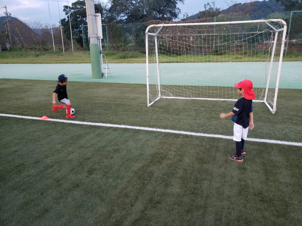キッズのスクールでは初めてパスの練習もして少しづつサッカーになってきましたね。